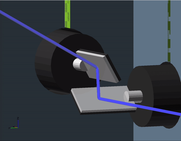 This project features a raytracing engine for predicting the path of the laser beam. Unfortunately, the rendering is done in OpenSCAD still. I plan on switching to OpenGL for native support in the future, but in the meantime, please enjoy the following gifs of the raytracing functionality. I'm pretty proud of it -- it computes the normals of the surface, and the vector of reflection. It uses the clojure (lazy-seq) macro. Check out the code :).