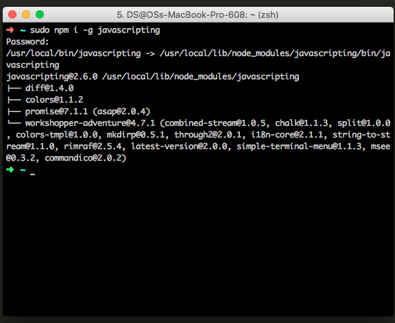 npm install -g javascripting(installs it)javascripting(runs it) -