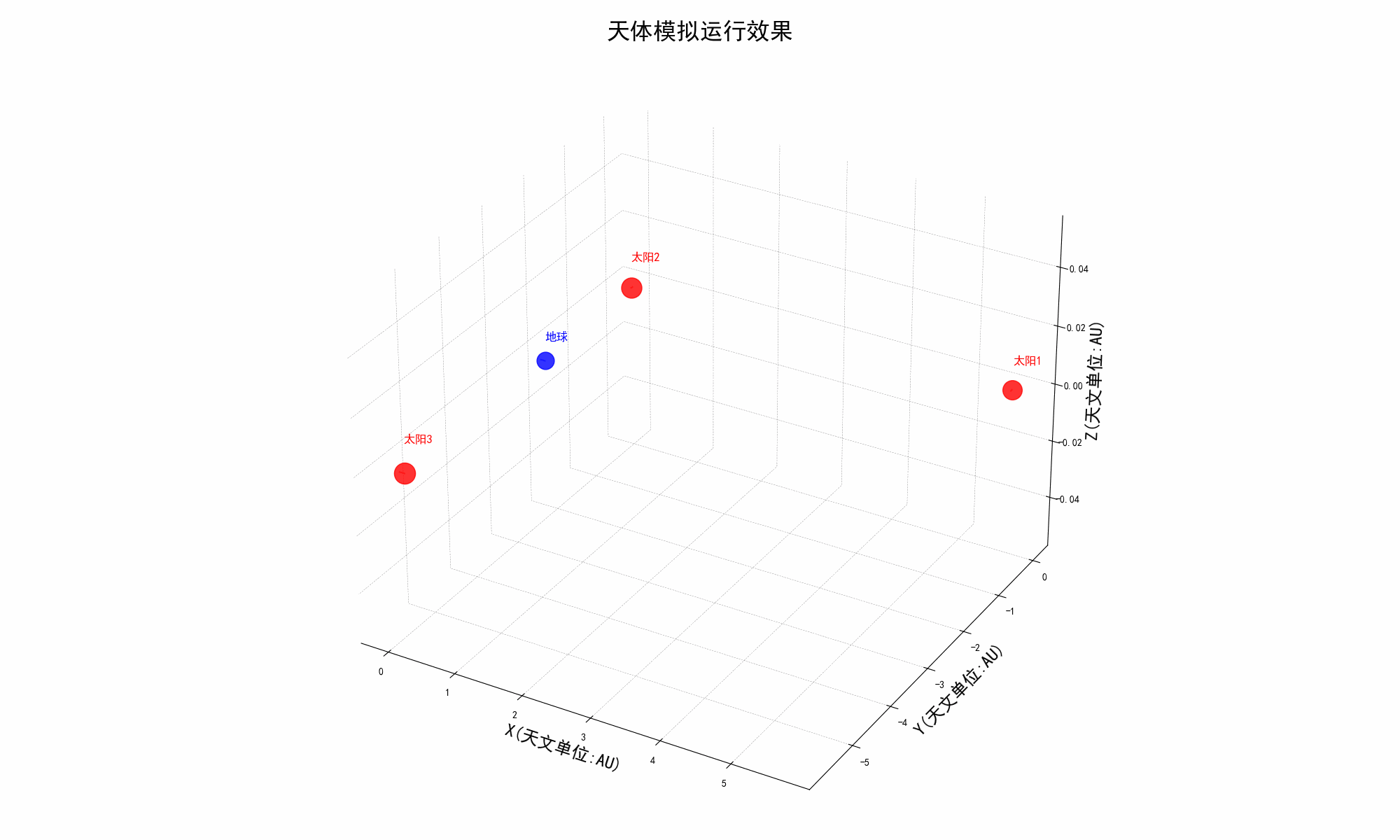 我们可以自己通过调整天体的初始坐标、质量和矢量速度等等参数来自定义各种场景来控制天体的运行效果。
